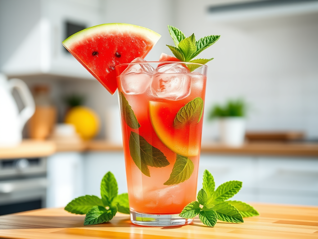 Add all ingredients to a pitcher. Lightly muddle the mint and watermelon to release flavor. Add water, stir, and let it chill for 30 minutes. Sip throughout the day.